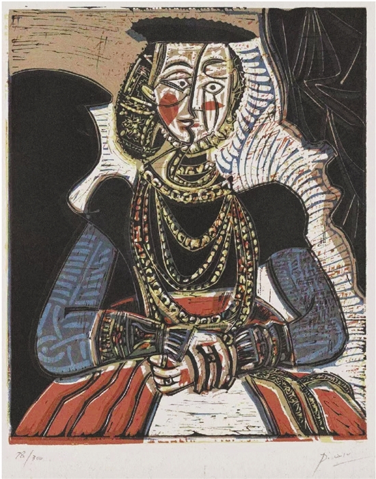 依据卢卡斯·克拉纳赫作品创作的女子肖像 27×22cm 麻胶版 1962年