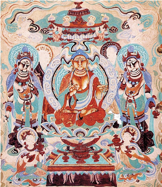 莫高窟第12窟窟顶南披 说法图 图片来源:赵声良《唐朝后期敦煌壁画的色彩》