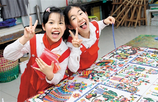 宁波市爱菊艺术学校学生在社团课上创作作品《剪花娘子——库淑兰剪纸艺术立体再现》,该校“艺美课程”涵盖舞蹈、声乐、表演、器乐、美术、书画六大专业15门艺术课,并程纳入常规课表,每周2次,每次2课时。