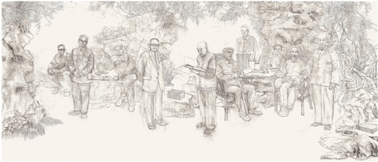 吕国钢 青藤传灯 绍兴书画院十老 200×500cm 铅笔纸本