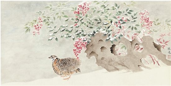 陈逸 初雪 98×38cm 纸本设色