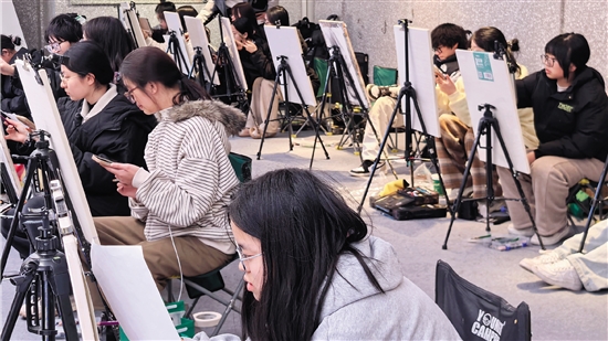 图为浙江丽水松阳县第二中学美术生备战高考中 王国华/摄