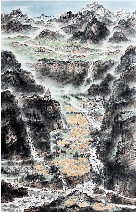 张风塘 雷古山下丰收忙 360×200cm