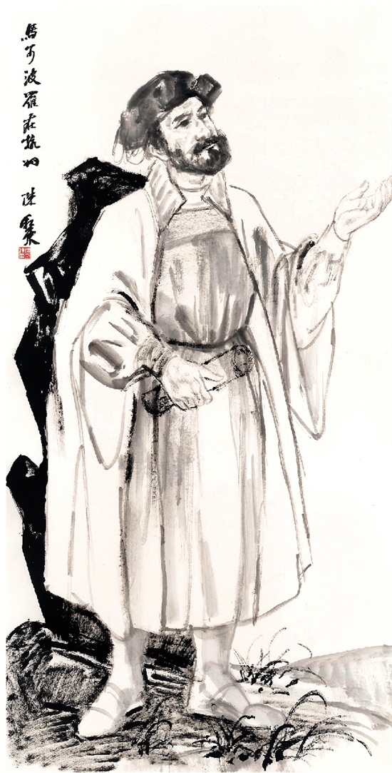 陈秋东 马可·波罗在杭州 138×69cm