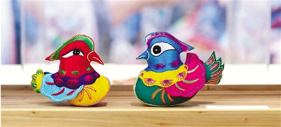 刘兰芳、张煜瑶、张煜琛 立体鸳鸯摆件 庆阳香包 丝绵、传统香料