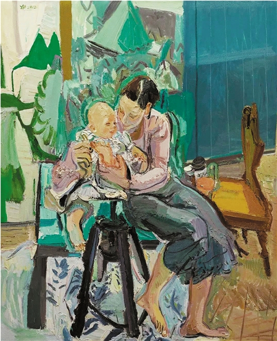 闫平 母与子 160×140cm 布面油彩 2007年(作品选自“精微之境:具象绘画研究展”)