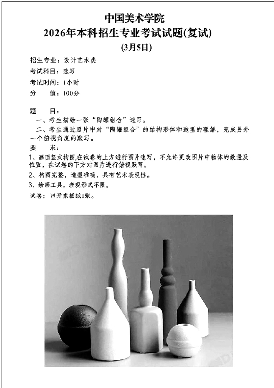 中国美术学院复试考题