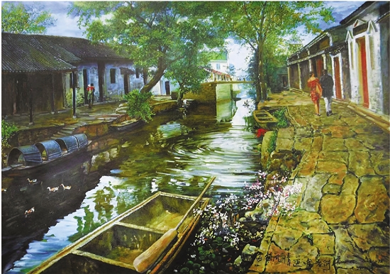高汝法 古镇风情道墟老街 96×137cm 布面油画 2011年 浙江省博物馆藏