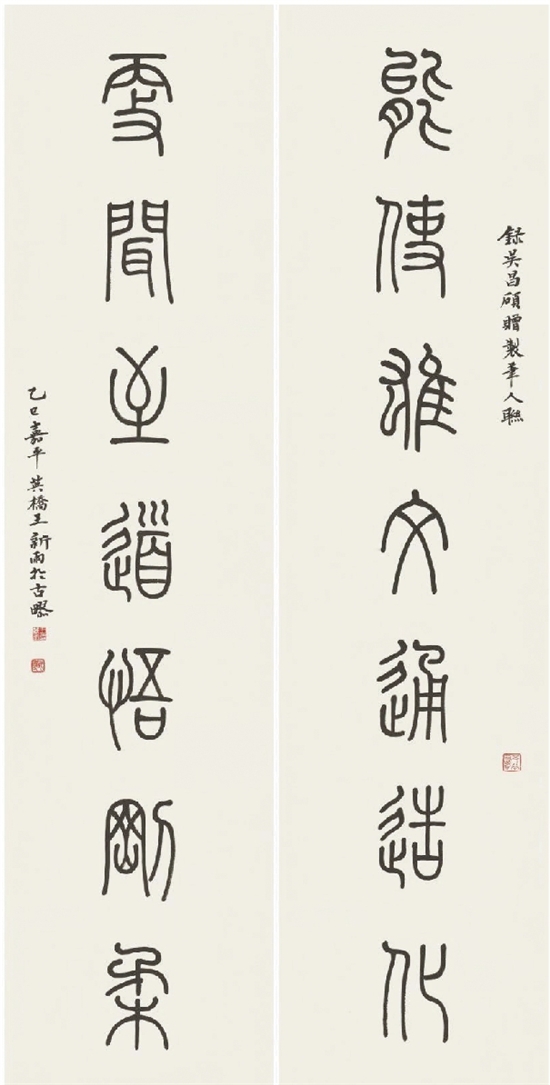 王新雨 吴昌硕《赠制笔人联》 篆书对联