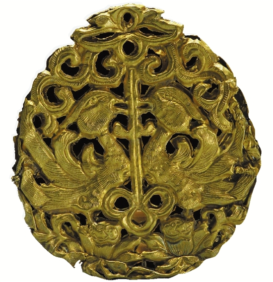 南宋 透雕满池娇金帔坠 东阳市博物馆藏