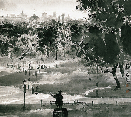 陆春涛 欧洲写生之四十六 水墨纸本 42×50cm 2005年