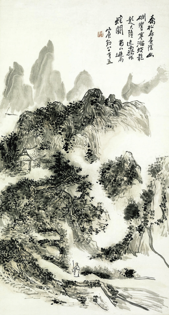334 黄宾虹 蜀山避雨图一堂 设色纸本