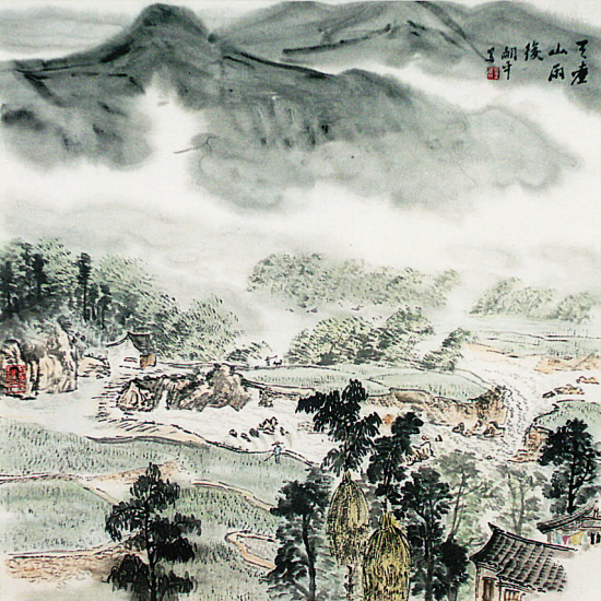 张嗣平 天台山雨后 69×69cm