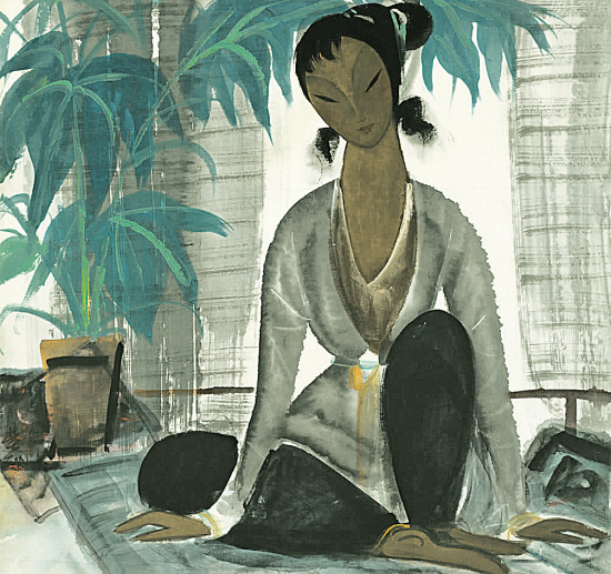 林风眠 南国仕女 上世纪60年代 纸本彩墨 66.5×70cm