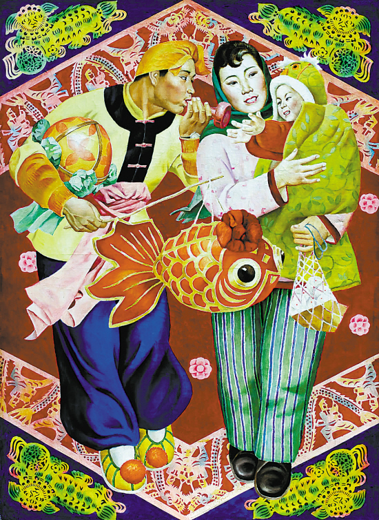 韩喜增 岁时图组画——元宵 油画 1985年 80×110cm