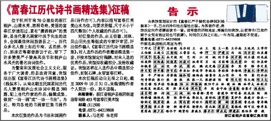 《富春江历代诗书画精选集》征稿