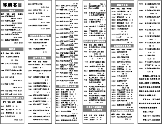 欲购以上图书者,50元以下加收5元邮资费、50元以上加收10%邮资费。务必在汇款单上注明所购图书的编号、书名及本人的详细地址、邮编、电话。