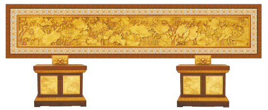 落地屏《出水芙蓉》
