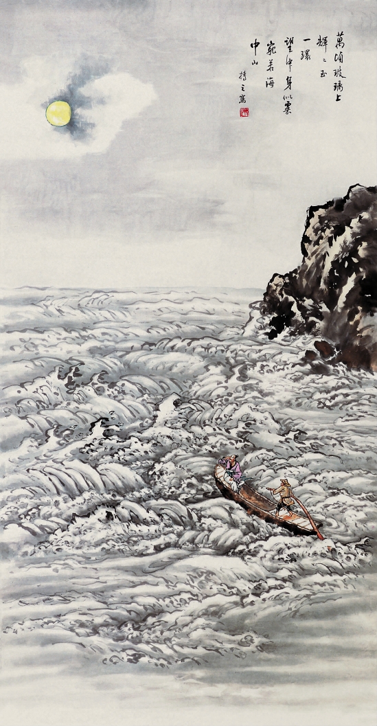 沈以正 月下观海图 130×67cm