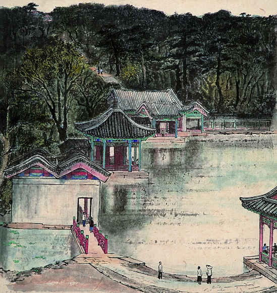 周思聪 颐和园风景 45.5×43cm 1959年 宣纸 水墨设色