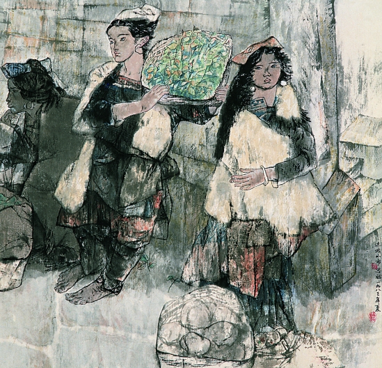 周思聪 边城小市 98×101cm 1983年 宣纸 水墨设色