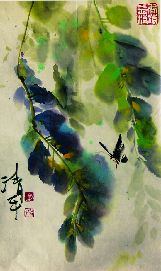夏清平(湖北武汉) 绿荫蝶舞 中国画