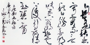 周先生的作品洋溢着强烈的主观色彩和深刻的人文气息,优雅而潇洒,灵动而俊朗,大气磅礴,顾盼生情,气韵贯通,尤其是他的草书,翩若惊鸿,矫若游龙,落笔即见风骨,即显神采,给人—种极富流动感的视觉和心理冲击,既体现出他深刻的书法个性,又具有深厚的文化底蕴,这是一种具有民族意识的“大书法”,实为大家风范。周先生以充满魅力的笔触提升了中国书法的品位和时代精神、民族之魂,因此他的书法,必定被这个时代所铭记。