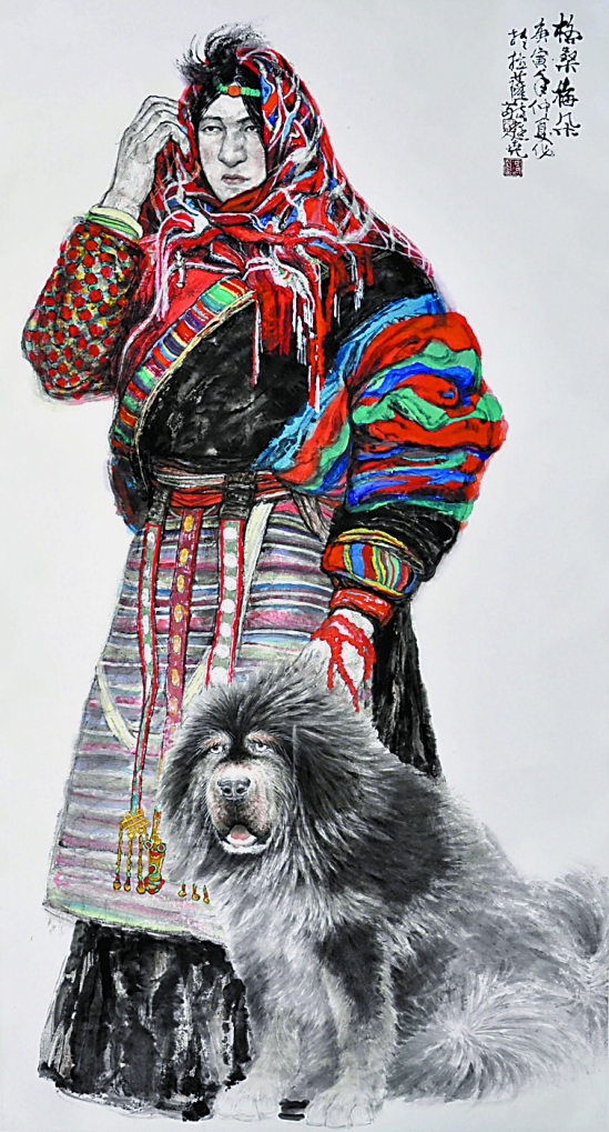 敬庭尧 格桑梅朵 纸本 180×97cm 2010年