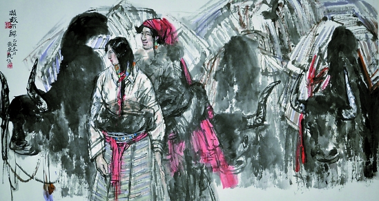 敬庭尧 满载而归 纸本 97×180cm 2010年