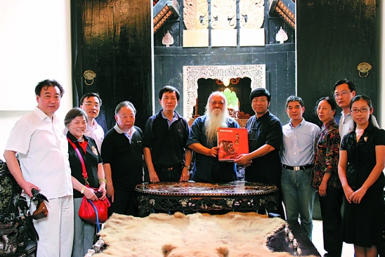 访问“黑庙”庙主。孔维克代表中方艺术家向泰国著名画家塔万·打赤尼先生赠送画册。