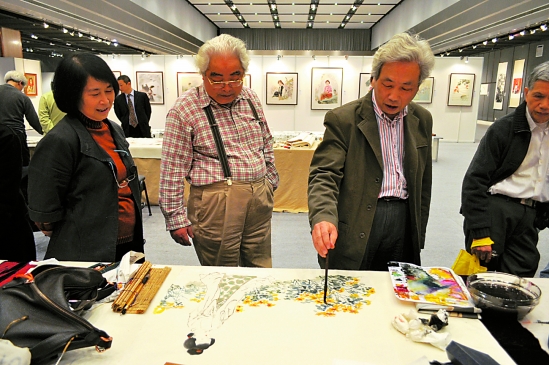 老艺术家在香港展览中心现场挥毫