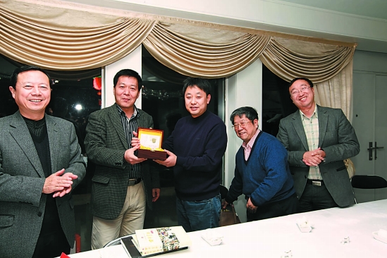 团长王胜利、副团长王勇向中国驻伊斯坦布尔总领事馆副总领事孙振勇赠送大唐西市“银杯”
