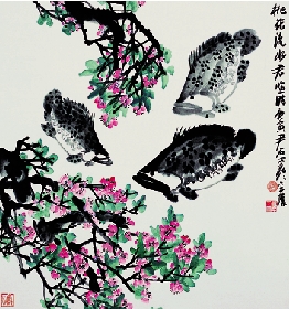 尹石 桃花流水君临时 68×68cm 中国画