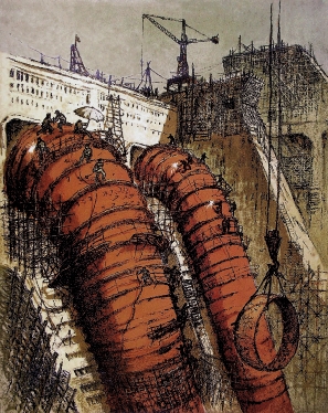 洪世清 新安江水电站 石版 40×35.5cm 1960年
