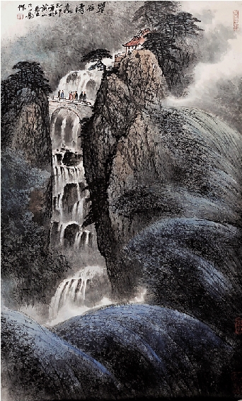 童乃寿 翠谷涛岚 58×96cm 1999年