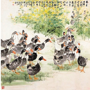 鲍铁雷 群鸭 180×180cm