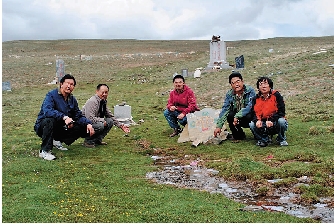 采风团成员在黄河源头喝泉水