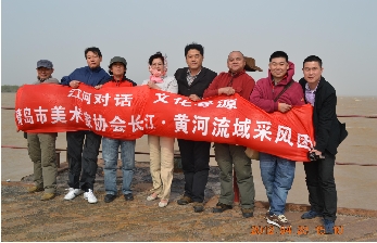 采风团成员在黄河入海口举行启动仪式