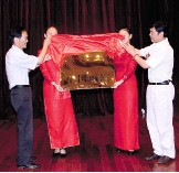 文化部原副部长潘震宙、文化部华夏文化遗产保护中心主任乔申乾为华夏文化遗产中国画院成立揭牌