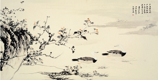 张岩 寒鸭图 138×68cm 纸本 2012年