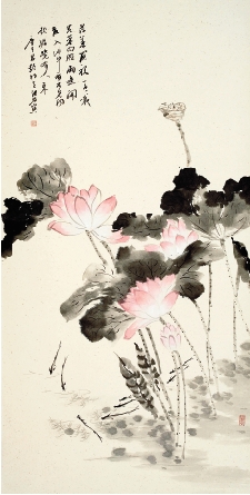 张岩 荷香鱼乐 138×68cm 纸本 2012年