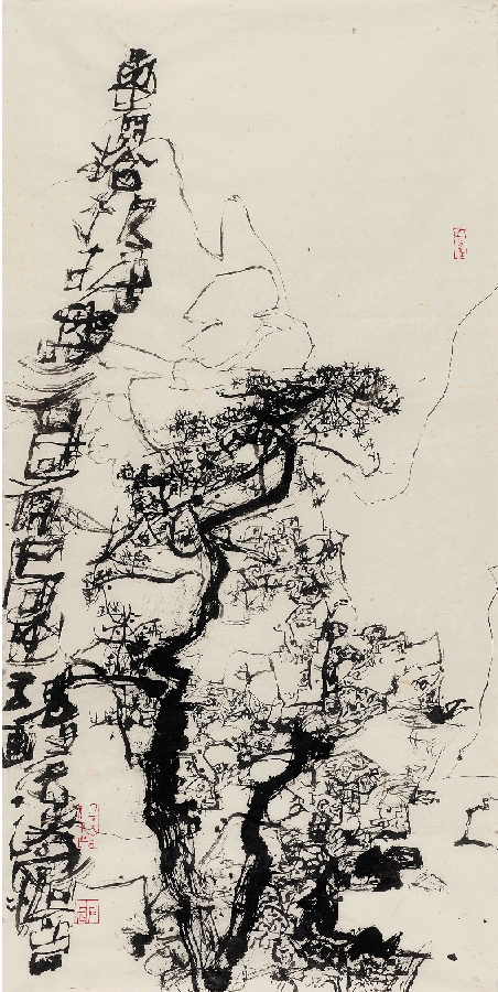 石虎 黄山有松 根据磐石 国有中国画 魂系汉字 140×70cm 纸本水墨 2013年