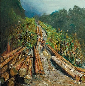 何哲生 龙门山巧遇樵者 120×120cm 写生油画