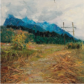 何哲生 龙门山台地 120×120cm 写生油画 2012年