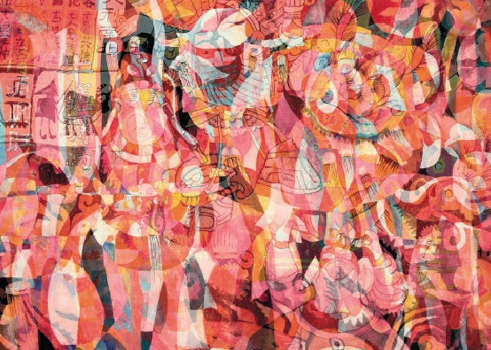 穆益林 过大年NO.3 114×161cm 帛画 2006年