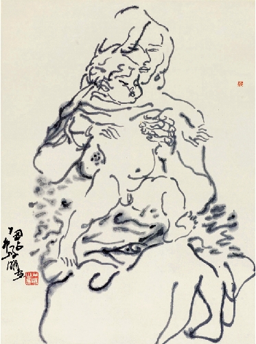 吴山明 母与子 68×50cm 1987年