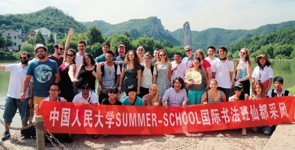 本报讯 小刘 为配合教学,使国际学生更好了解中国传统文化,应浙江省仙都风景区管委会邀请, 7月17日至21日,中国人民大学2014国际小学期(Summer School)书法班师生一行37人,在主讲教师郑晓华教授带领下,赴我国历史文化名城杭州和浙南著名国家级风景区仙都参观考察。 在杭州,书法班师生参观了位于西湖景区周边的历史文化名胜古迹孔庙、西泠印社、南宋御街等。通过参观古代石刻展、中国篆刻历史展、中国古代教育制度展等,留学生们加深了对中国历史、文化和艺术的了解。 随后,师生一行来到拥有道教三十六洞天之一美誉的缙云仙都采风。采风团参观了缙云河阳古民居、倪翁洞、黄帝祠宇、鼎湖峰等景区,并走访了当地中学,与中学书法爱好者交流。20日下午,在完成参观考察任务后,师生一行在仙都黄帝祠宇前广场集体创作,书写了反映社会主义核心价值观的巨幅长卷,并为仙都风景区创作了以歌颂仙都美丽风光为主题的书法作品。 本期国际小学期书法班学生37人,来自法国、英国、加拿大、爱尔兰、意大利、以色列、芬兰等13个国家和地区。课程期间,艺术学院精心组织教学,还组织学生参观北京文化街“琉璃厂”,为学生了解中国文化提供多样化的形式和渠道。国际书法班学生高度评价艺术学院的工作。他们在给老师写的感谢信中说:“这次的书法课程远远超越了我们对这样短暂的暑期学校所能产生的想象。” |