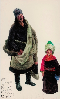吴长江 牧人与孩童 纸本水性颜料 187×112.8cm 2014年