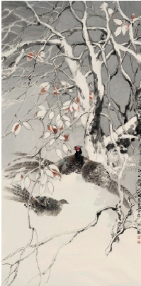 郭汝愚 瑞雪锦雉图 242×122cm