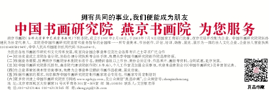(三)经中国书画研究院委托授权,由本院代理该院创作院(工作站),个人工作室及加盟会员事项,欢迎来函索取会刊《中国书画研究》及申请登记表。